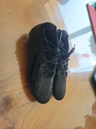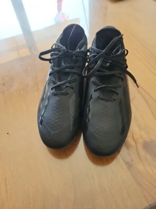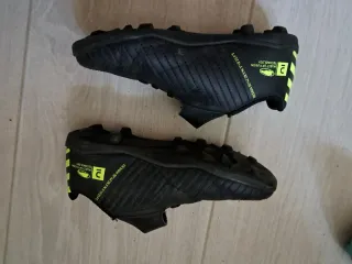 Scarpe da calcio nere per bambini, taglia 39,5, in ottime condizioni, lavate. Utilizzabili sia con lacci che senza. Design sportivo, chiusura con lacci, materiale sintetico.