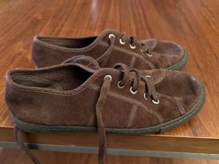 Sneakers in pelle scamosciata per bambini. Chiusura con lacci, suola in gomma, design casual.