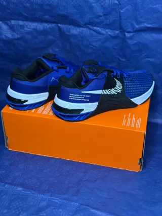 Scarpe da ginnastica Nike Metcon 8. - Design bicolore blu e nero. - Logo Nike sul lato. - Dettagli METCON sulla punta.