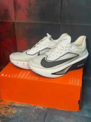 Scarpe da running Nike Zoom Fly 6. - Design moderno con tomaia bianca e dettagli neri. - Intersuola con tecnologia ZoomX per un'ammortizzazione reattiva.