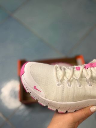 Scarpe da allenamento Nike Free Metcon 6. - Design bianco con dettagli rosa. - Ideali per CrossFit e allenamenti intensi.