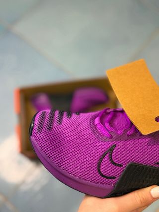 Vendo scarpe Nike Metcon 9, in ottime condizioni. Sono di colore rosa e rosso. - Perfette per allenamenti di fitness. - Suola in gomma resistente. - Design leggero e traspirante.