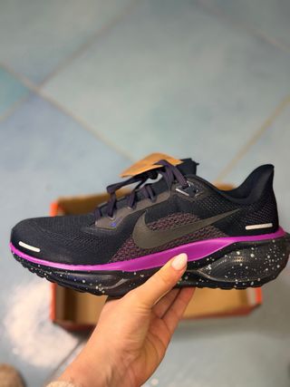 Scarpe da running Nike Zoom Pegasus 41 SE. - Tomaia in mesh traspirante. - Intersuola reattiva per un'ammortizzazione ottimale. - Design moderno con accenti viola. - Suola resistente per un'ottima aderenza.