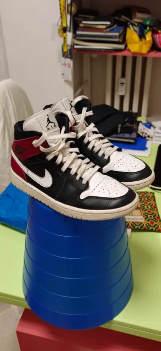 Scarpe Nike Air Jordan Mid. - Modello BQ6472-16. Le Nike Air Jordan 1 Mid BQ6472-16 sono scarpe iconiche che combinano uno stile da campo completo con un comfort di alta qualità. Comfort: il colletto imbottito che garantisce una calzata stabile e confortevole. L'elemento Air-Sole offre ammortizzazione, mentre la suola in gomma piena assicura una trazione affidabile su diverse superfici