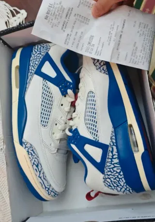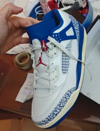 Scarpe Jordan Spizike Low in ottime condizioni. Taglia 44.5. - Design accattivante con dettagli blu e bianchi. - Materiali di qualità per comfort e durata.