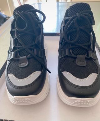 Scarpe sportive con un design moderno e accattivante. - Tomaia in tessuto traspirante. - Suola spessa e ammortizzata. - Dettagli riflettenti per maggiore visibilità. - Chiusura con lacci.