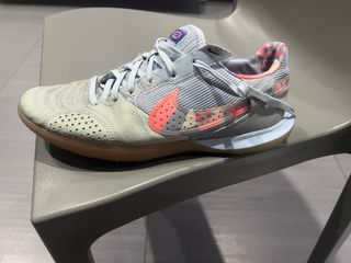Scarpe da calcio indoor Nike. - Tomaia in pelle scamosciata e mesh. - Dettagli in rosa e trasparenza. - Suola in gomma per aderenza. prezzo leggermente trattabile