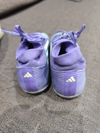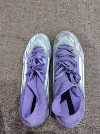Scarpe da calcio Adidas F50 usate pochissimo. - Modello con calzino integrato. - Design a righe viola e verdi.