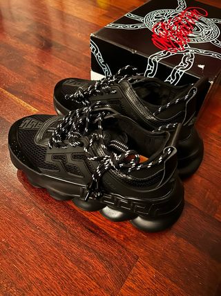 Vendo un paio di scarpe sportive Versace, colore nero. Sono in buone condizioni tenute bene - Modello sportivo - Stringate - Suola alta