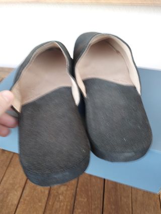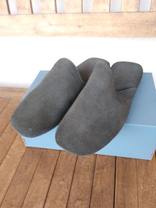 Pantofole uomo in vera pelle nr. 45 Nuove senza scatola Made in Italy.Lunghezza cm 29, Larghezza cm 8 Queste pantofole da uomo sono un vero gioiello di artigianalità e qualità. Realizzate in vera pelle scamosciata di un elegante grigio antracite, offrono una morbidezza incredibile al tatto. Interno punzonato "Vera Pelle", garanzia di materiali naturali, traspiranti e resistenti. Come visibile dalle foto, le pantofole sono nuove. Le suole sono perfettamente pulite e presentano ancora l'adesivo originale di fabbrica. Design Elegante: Modello a sabot chiuso con una texture scamosciata raffinata e interni in pelle chiara a contrasto