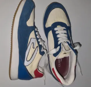 Causa problemi personali alla caviglia vendo scarpe Adidas praticamente nuove, come si vede dalle solette interne e dalla suola sotto. Scarpe Adidas Coast Star in pelle bianca con dettagli blu e rossi. - Design classico. - Tre strisce iconiche sui lati.