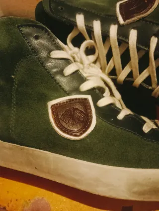 Eleganti scarpe alte da uomo Fradi. - Tomaia in morbida pelle scamosciata verde. - Dettagli in pelle bianca. - Suola in gomma bianca. - Patch logo sul lato. Prodotto Made in Italy Nuovissime