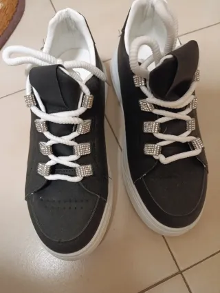 | Nuove senza cartellino e senza scatola | Scarpe con stringhe a strappo | Numero 39 | Colore nero lucido | Comodità e praticita' | AV Flex #avflex #scarpesignoraadulta #scarpesignora #scarpesignora39 Eleganti scarpe da donna in materiale lucido e scamosciato. - Chiusura con doppio velcro. - Dettagli glitter sulla punta. - Suola platform.