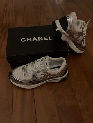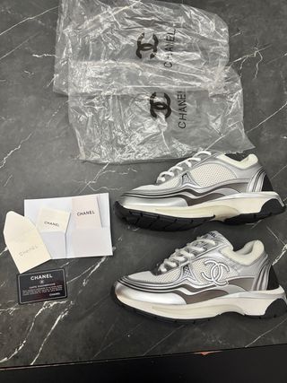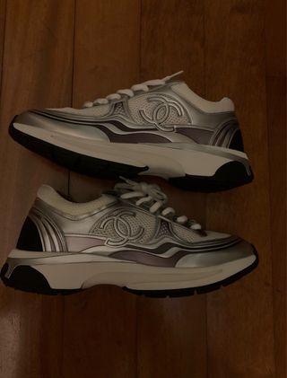 Scarpe sportive Chanel modello runner. - Design moderno con dettagli metallici. - Tomaia in mesh traspirante. - Suola in gomma resistente.