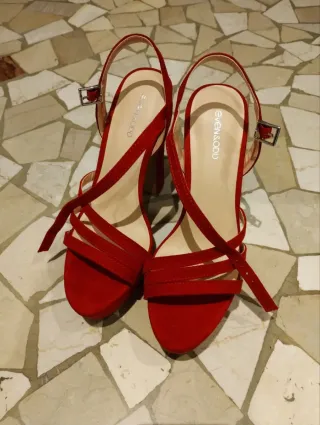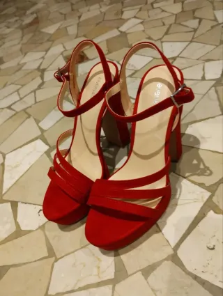Eleganti scarpe con tacco alto, perfette per completare un look. - Colore rosso vivace. - Design con cinturino alla caviglia. - Tacco largo e plateau.