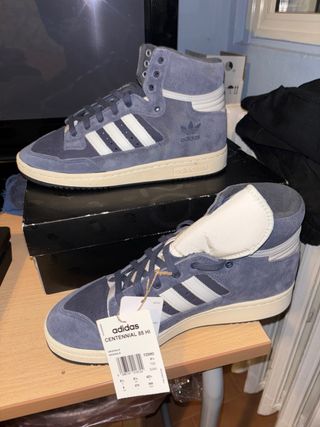 Scarpe Adidas modello high top. - Tomaia in suede blu. - Dettagli bianchi a contrasto. - Suola in gomma.