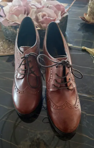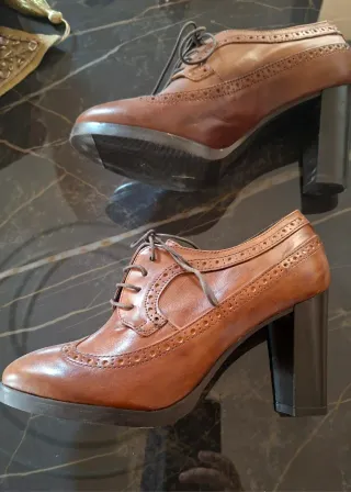 Eleganti scarpe stringate con tacco alto, realizzate in pelle. - Design brogue con dettagli traforati. - Chiusura con lacci. - Tacco squadrato e robusto.