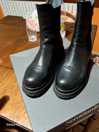 Eleganti scarpe da uomo Nero Giardini in pelle grigia. - Design a stivaletto alto. - Chiusura con lacci. - Dettagli traforati sulla tomaia. Numero 41 (veste grande) Usate in buono stato
