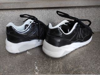 Scarpe da ginnastica/eleganti New Balance ORIGINALI comprate in negozio, colore nero lucido e suola bianca, N. 39 , con scatola (originale ma scarabocchiata), vendo per inutilizzo.