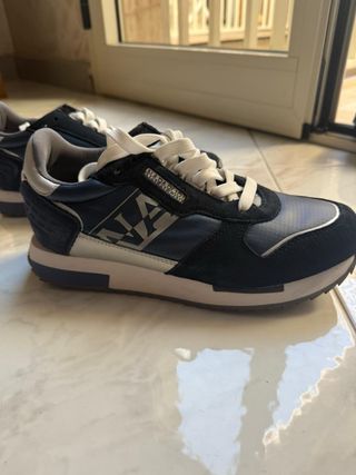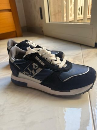 Sneakers Napapijri da donna in una combinazione di colori blu e argento. - Logo Napapijri sul lato. - Dettagli in argento. - Chiusura con lacci bianchi.