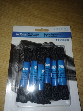 lacci per le scarpe nere confezione da 6 paia nuovi scatola ancora sigillata marca lifetime misura 12x90 cm