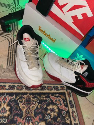 Vendo un paio di scarpe Jordan Aura Max 3. Sono in buone condizioni, con qualche segno di usura. - Modello: Jordan Aura Max 3 - Numero di scarpe: 2 (una coppia) - Colore: bianco e rosso - Ottime per uso quotidiano