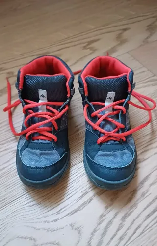 Vendo queste pratiche scarpe da trekking Quechua, ideali per camminate, escursioni leggere, passeggiate in montagna o in campagna. Sono un modello comodo e affidabile di Decathlon, perfette per bambina/o ragazza/o o donna con un piede piccolo. L'etichetta interna è stata tagliata, ma la soletta misura esattamente 23 cm. Questo corrisponde a una taglia 36 (EU) standard. Condizione: Buone condizioni. Presentano i normali segni d'usura dovuti all'utilizzo, ma la suola esterna ha ancora un buon grip e sono pronte per essere usate.