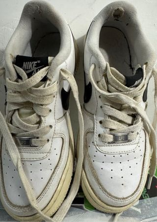 Scarpe Nike Air Force 1 usate, misura 36 (corrisponde a 23 cm). - Design iconico. - Tomaia in pelle bianca. - Swoosh laterale nero. - Suola in gomma resistente.