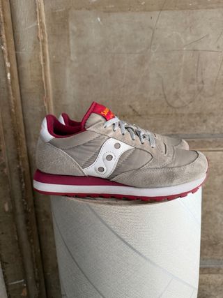 Sneakers Saucony modello Jazz in ottime condizioni. - Tomaia in tessuto e pelle scamosciata. - Dettagli iconici a S laterale. - Suola in gomma resistente.