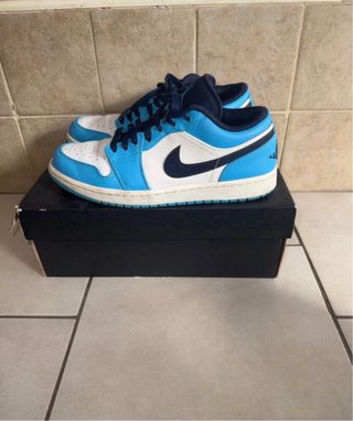 Scarpe Jordan basse in colorazioni blu e bianche, perfette per un look casual. - Design iconico Jordan. - Tomaia in pelle. - Suola in gomma.