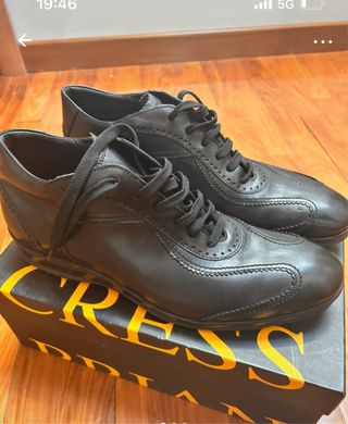 👞Eleganti sneakers casual Stone Haven (calzaturificio Soldini), realizzate artigianalmente in Italia. In vera pelle color testa di moro/cognac di alta qualità. Caratteristiche: Taglia: 43 Logo "T" goffrato sul lato Suola in gomma nera ultra leggera e confortevole Interno foderato in pelle e tessuto traspirante Condizioni: Molto buone, con naturali segni di utilizzo sulla pelle che ne aumentano il fascino vintage. 🇮🇹Made in Italy Perfette per un look casual-chic o per l'ufficio. Comode e resistenti. 🔜 Non perdere altri miei articoli!😉 💎🍀🦄🐞⭐