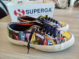 Superga 2750 Fantasy Cotu, scarpe da ginnastica in tela cerata, modello unisex, misura 39, presentano una stampa multicolore molto originale. Usate ma in perfette condizioni. - Perfette per un look casual e di tendenza. - Suola in gomma, molto comode. - Ideali per la primavera/estate.