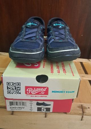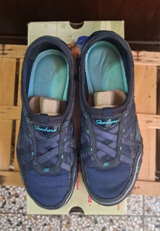 Vendo un paio di scarpe Skechers Breathe Easy, colore Navy blu, numero 35. Ancora in buone condizioni - Modello: Breathe Easy - Colore principale: Navy - Dettagli: Blu