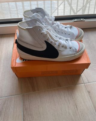 Scarpe Nike Blazer Mid '77 Vintage. - Design high-top. - Tomaia in pelle e tessuto. - Swoosh laterale nero. - Dettagli arancioni sulla punta.