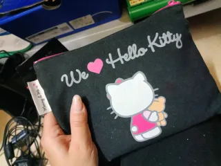 Pochette con l'iconico personaggio di Hello Kitty. - Design con Hello Kitty e fiocco. - Zip di chiusura. - Dettagli in rosa e grigio.