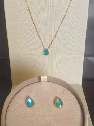 Elegante set composto da collana e orecchini. - Materiale: acciaio inossidabile. - Design a goccia con pietra blu.