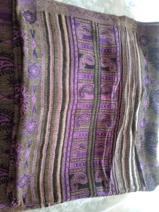 Elegante sciarpa da donna con una bellissima stampa e frange decorative. - Motivo a paisley e righe. - Dettagli in filo dorato. - Frange sul bordo inferiore. Prezzo non trattabile