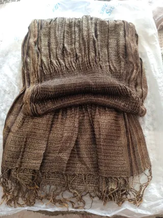 Elegante sciarpa da donna con fili lurex dorati. - Tessuto leggermente frangiato. - Effetto metallico brillante. Prezzo non trattabile