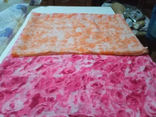 Sciarpa con stampa floreale. Un accessorio leggero e colorato. - Motivo floreale su base arancione. - Motivo floreale su base rosa. Prezzo non trattabile