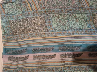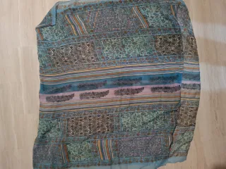 Sciarpa da donna con un design floreale e righe colorate. Un accessorio versatile per aggiungere un tocco di stile. - Tessuto leggero e trasparente. - Motivo a blocchi con disegni floreali. - Bordi con strisce colorate.