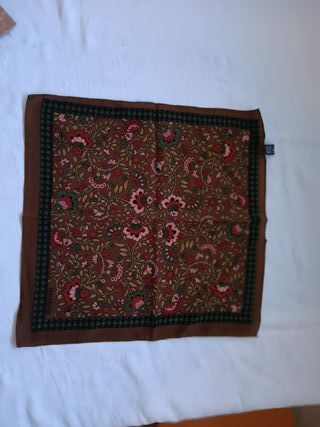 Foulard Gianni Versace Carrè uomo pura seta con disegno stile floreale su fondo marrone con bordatura in contrasto come nuovo impeccabile da taschino o collo misure 35 x 35