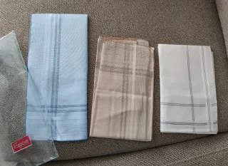 Set di tre sciarpe da uomo della marca Guasch. Design con sottili righe verticali. Dimensioni: 43x43 cm. Realizzato in cotone 100%. Prodotto in Spagna. Colori: bianco con linee blu, blu grigio e verde. Articolo disponibile nelle Canarie. Non spedibile tramite WALLAPOP. Possibilità di spedizione tramite posta ordinaria con tariffe ufficiali incluse nell'annuncio.