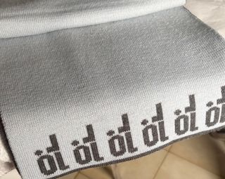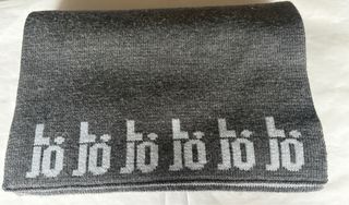 Sciarpa Liu Jo con un motivo a righe e un bordo decorato. - Purtroppo dalle foto non si vedono bene i colori, grigio e azzurro chiaro - Tessuto a maglia. - Motivo a righe sfumate. - Bordo con logo ripetuto. - sciarpa usata pochissimo, come nuova - misure: 30 cm x 166 cm