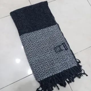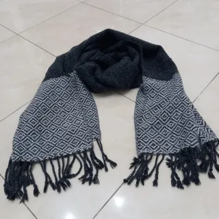 Sciarpa da uomo in misto lana con un motivo a rombi. - Tessuto con trama a rombi. - Bordi sfrangiati. - e’ in perfette condizioni perché usata pochissimo Misure: larga 60 x lunghezza 186