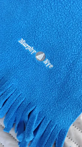 Sciarpa da uomo Murphy & Nye di colore azzurro, realizzata in tessuto tipo pile, dotata di frange finali. Usata ma in buone condizioni.