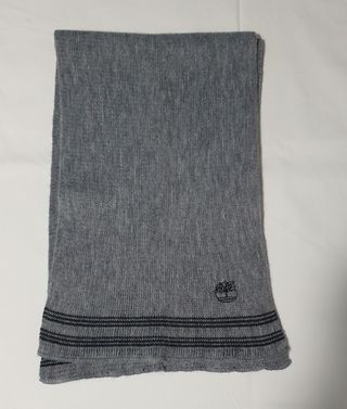 Vendo sciarpa uomo Timberland colore grigio con righe nere, buone condizioni utilizzata poche volte. Unico difetto, filo tirato e sistemato con punto ( vedi foto). Lunghezza: 165 cm Larghezza : 24 cm Composizione: acrilico 100%
