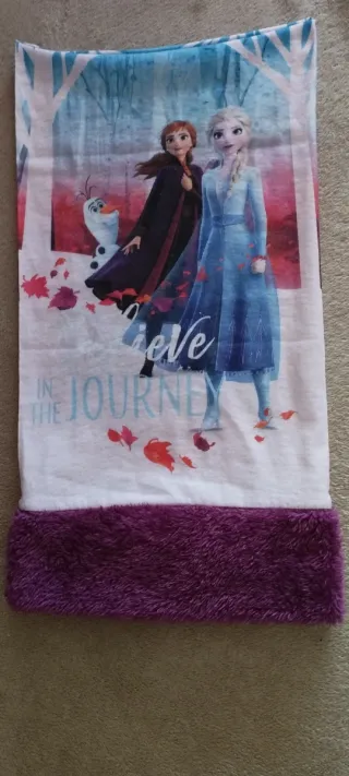 Braga collo con stampa Frozen, ideale per i più piccoli. Presenta una morbida finitura in pelo color viola.