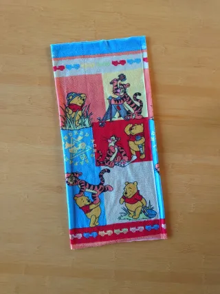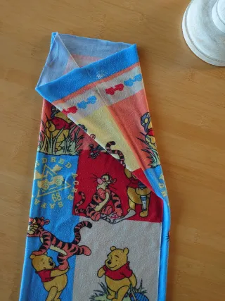 Sciarpa per bambini con stampa di Winnie the Pooh e dei suoi amici. Design colorato con vari personaggi. Bordo con stampa di auto.
