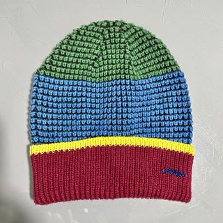 Set di cappello e sciarpa NUOVO, in tessuto, ideale per completare il tuo stile. - Design multicolore con blocchi di colore. - Tessuto texturizzato. - Cappello con fascia rossa e bordo giallo. - Sciarpa con sezioni in bordeaux, verde, blu e giallo.
