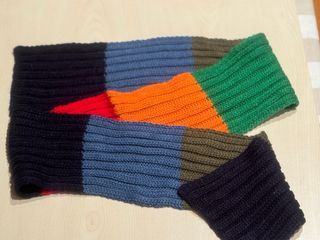 Sciarpa lavorata a maglia per bambini con un design a righe multicolor. Tessuto morbido e caldo. Ideale per le giornate fredde.